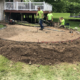 Demolished existing damaged steps. Rebuilt steps to match existing with brick sides and risers. Poured new concrete treads and landing.